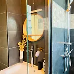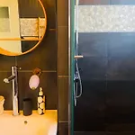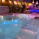 Évasion Tropicale - Villa d'Artiste avec Jacuzzi Privé dans un jardin Exotique includes a dressing area and overlooks the garden. Guests staying in this property will enjoy the convenience of hair dryers, complimentary toiletries, and bath sheets in the bathroom. A walk-in shower and a separate toilet can also be found.